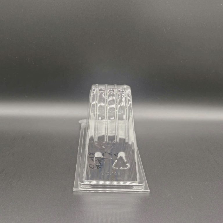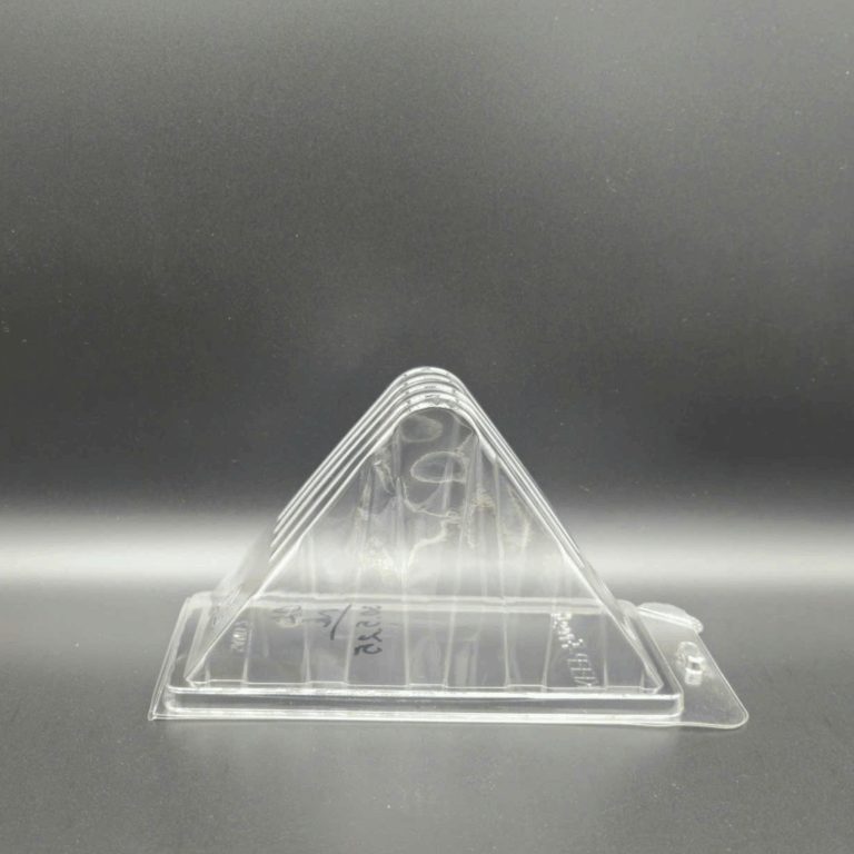 SAND 2 is a crystal-clear PET wedge clamshell engineered to cradle triangular sandwiches securely and keep layers neat from packing to point-of-sale, featuring rigid ribbed walls for strength, a hinged snap-fit lid for fast and reliable sealing, and discreet steam-vent holes that release moisture to reduce condensation and fogging for a fresher on-shelf look; the compact, display-ready shape stacks cleanly in chillers and grab-and-go counters, while the smooth rim supports branding, date, and barcode labels—ideal for convenience stores, cafés, supermarkets, central kitchens, and delivery programs; size 36.4 × 8.5 × 9.96 cm; packing 500 pcs/pack; material PET; color clear; made in Vietnam and suitable for export sourcing.
