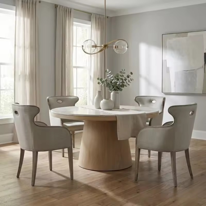 Made In Vietnam, This Scoop-Back Upholstered Dining Chair Features A Solid Oak Wood Frame With Premium Fabric Upholstery For A Refined, Modern Look In Dining And Hospitality Spaces. Designed For International Buyers Sourcing Vietnam-Made Furniture, It Suits Bulk Programs For Homes, Restaurants, And Hotels, With OEM/ODM Support For Project Specifications.