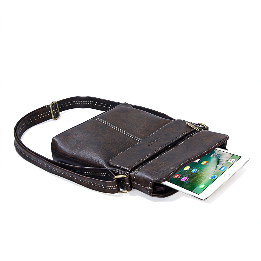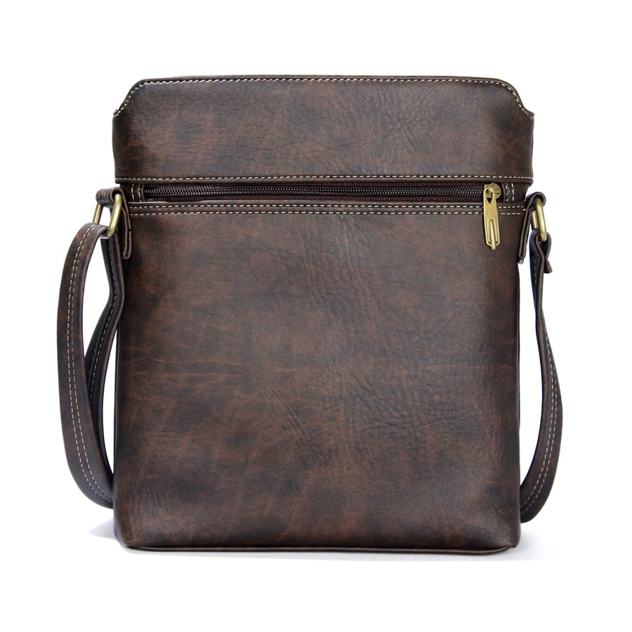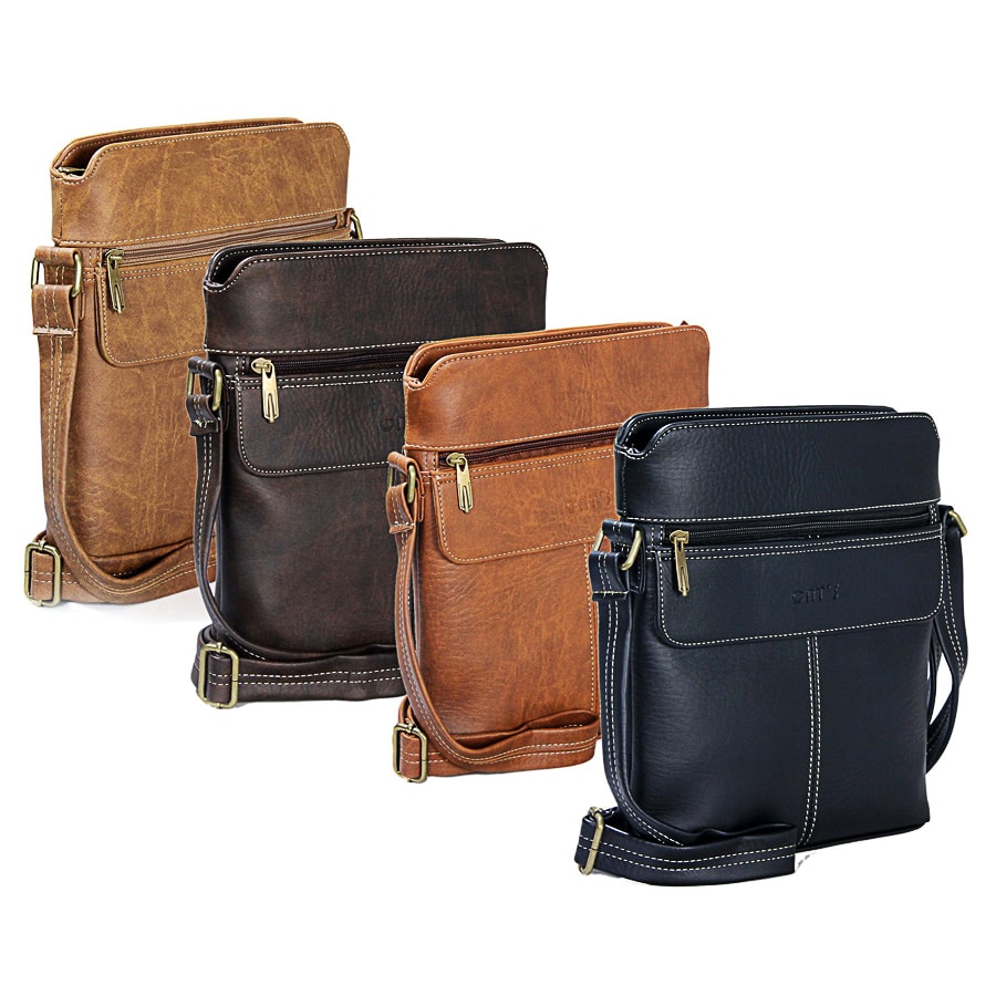 A compact, trend-driven crossbody designed for international buyers sourcing practical daily carry, sized to fit an iPad and essentials with a main compartment, an internal zip pocket, and a front pocket for quick access; crafted in Vietnam from synthetic leather with a soft fabric lining and detailed stitching, featuring an adjustable strap up to 130 cm for comfortable wear across work, school, travel, or casual city use, and offered in Light Tan, Dark Tan, Brown, and Black for flexible assortment planning.