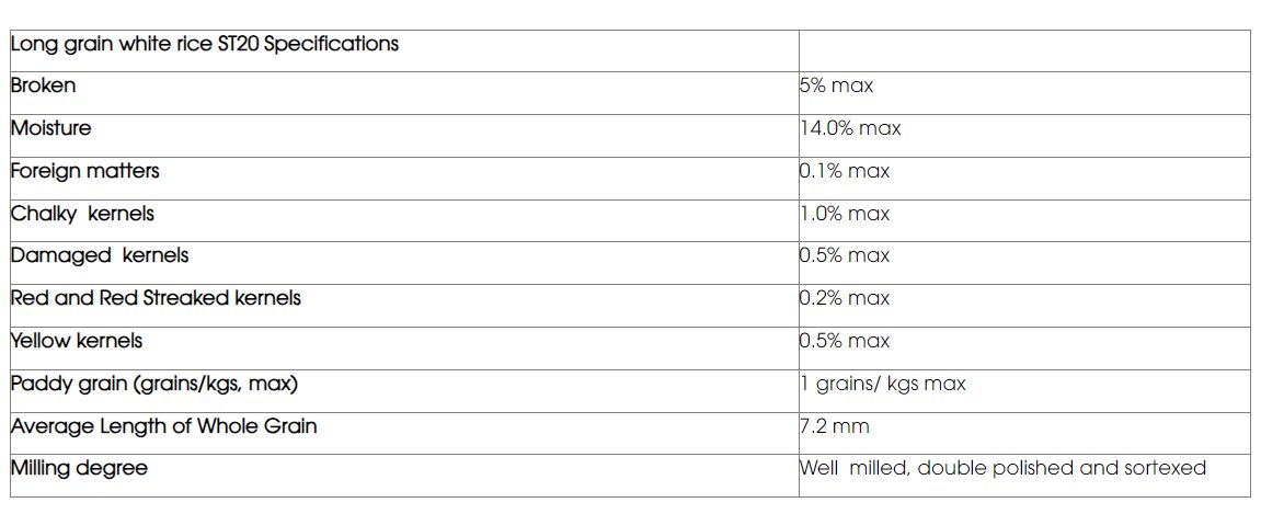 Grown up to three crops per year in Soc Trang, Bac Lieu, and other Mekong Delta provinces, ST20 has a growing cycle of 107–113 days and shows good resistance to salinity, pests, and common rice diseases. The grains average 7.6 mm in length, are white with low chalkiness, and have low amylose content, resulting in soft, fragrant rice ideal for premium household consumption and export markets.