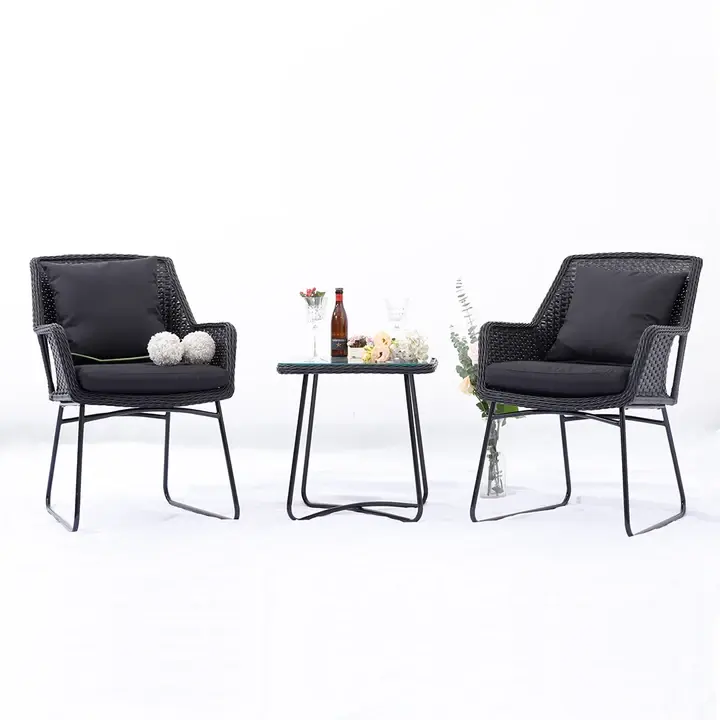 Designed for outdoor sourcing programs, this 2-seat bistro set features a durable stainless-steel frame with polyester wicker styling and waterproof performance for easy cleaning and long service life; suitable for balconies, gardens, cafés, and leisure facilities, with custom sizing available and made in Vietnam for export supply.