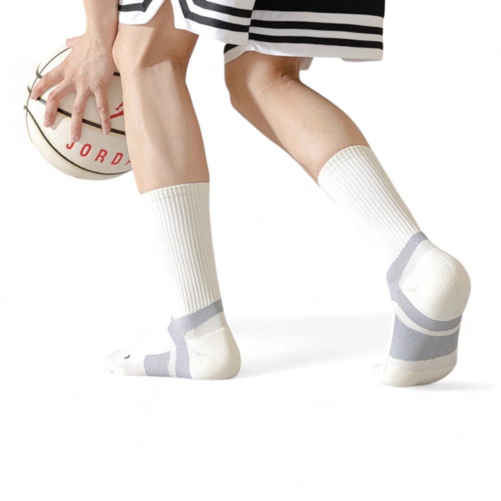 Made from organic combed cotton blended with polyamide and elastane, these Big Shot Sport socks are designed with reinforced cushioning and structured support zones to absorb impact and enhance stability during intense movements; ideal for basketball, indoor sports, and court-based training, this product offers durability, comfort, and performance consistency, making it suitable for international buyers seeking reliable sport-focused socks with scalable sourcing.