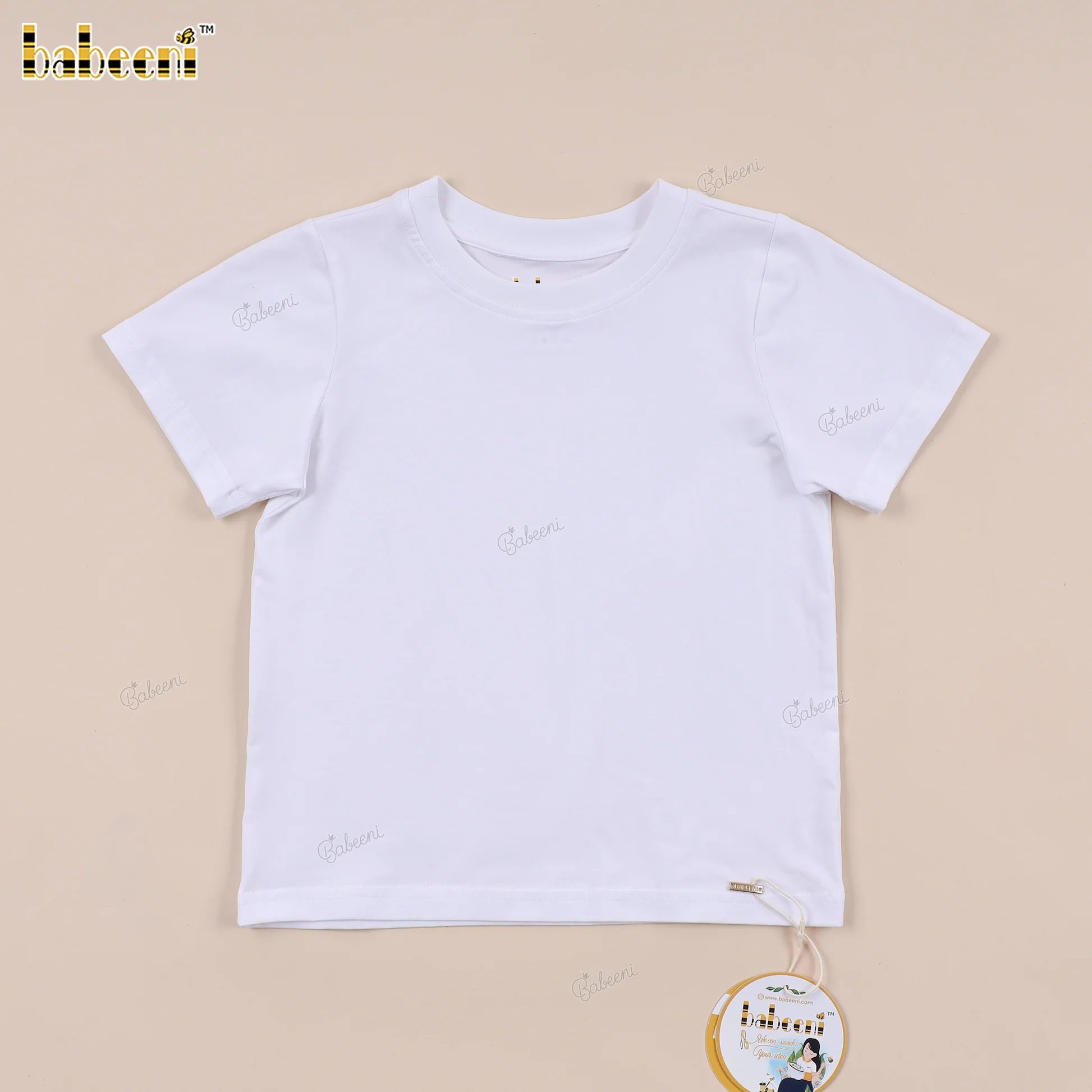 The Boys’ Cotton T-Shirt BC1399 is a versatile essential developed for international sourcing, crafted from soft white knit cotton to provide breathability and all-day comfort, designed as a refined layering piece that pairs seamlessly with coordinated sets or standalone outfits for casual and dressy occasions; carefully manufactured in Hanoi, Vietnam by BABEENI’s dedicated artisans, this T-shirt is supplied under ODM service with a clean plain-finish technique, making it suitable for seasonal collections and global wholesale programs.