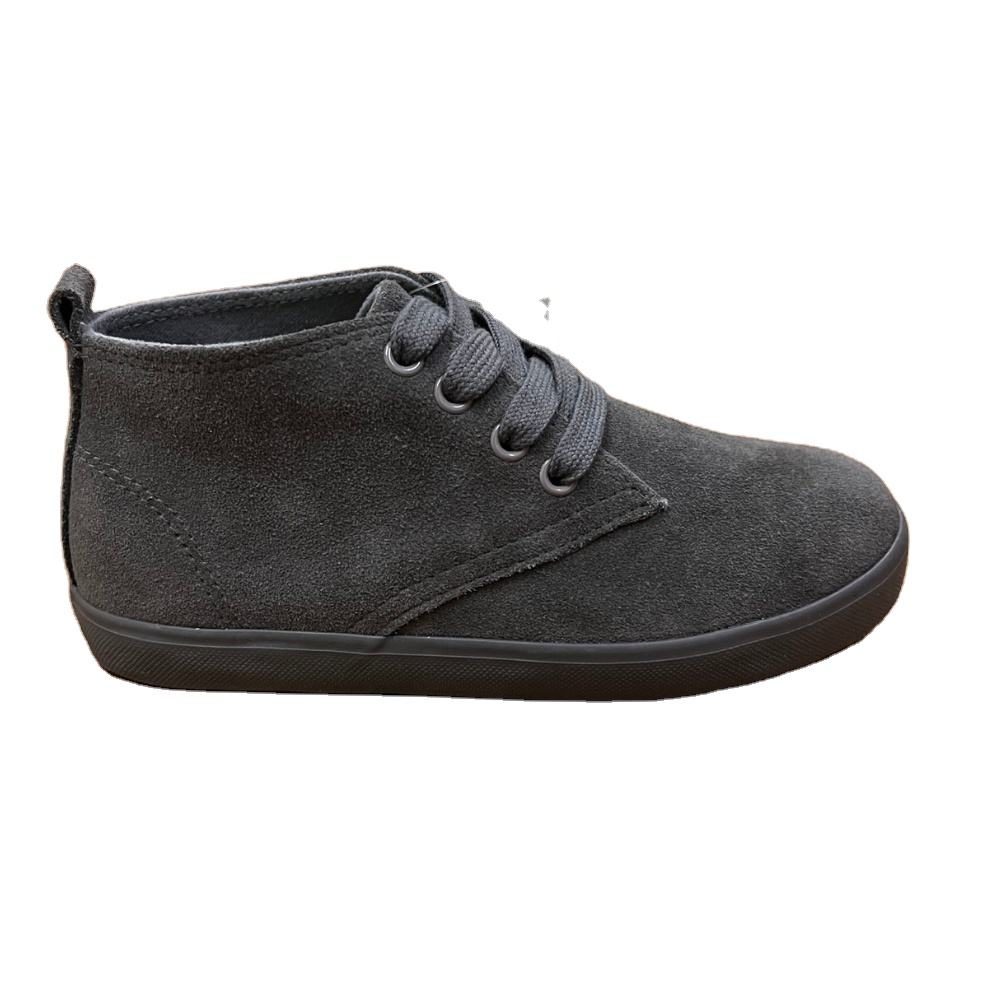 Manufactured in Hanoi, Vietnam, model W23610-03 is a lightweight boys’ vulcanized walking shoe designed for daily comfort and durability, featuring a genuine leather upper, breathable cotton fabric/mesh lining, PU midsole cushioning, and a rubber outsole for reliable grip; the product can be supplied in either hook-and-loop strap or lace-up versions depending on the selected sample, with OEM customization available (custom logo from 1 pair, custom packaging from 50 pairs, graphic customization from 1,500 pairs).