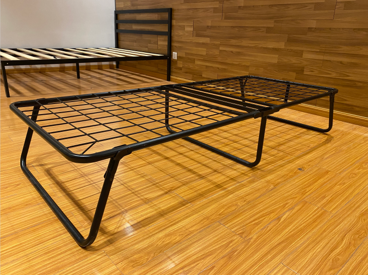 Designed for hotels, guest rooms, and indoor bedroom use, this Vietnam-made AF-FB01 foldable guest bed frame features a sturdy iron/metal tubular structure with a supportive grid base and a space-saving foldable design for easy storage and handling; supplied in black with KD easy assembling, packed one unit per box (cartons then palletized) and supported by stable monthly capacity up to 10,000 cartons, with customization options for logo/packaging/graphics available from 1,000 cartons and certification options listed as FCC/CE/CFR for export-oriented sourcing.
