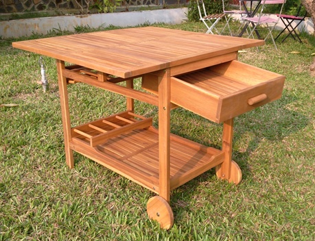 Manufactured in Vietnam, the FW236.1 outdoor serving cart is designed for importers and hospitality buyers sourcing durable wooden service furniture for patios, garden dining, and resort F&B operations. Made from acacia wood with an oil finish, it offers a practical rolling setup with a spacious top surface, a pull-out drawer, and open shelving for organizing drinks, utensils, and service items—ideal for export-oriented procurement programs.