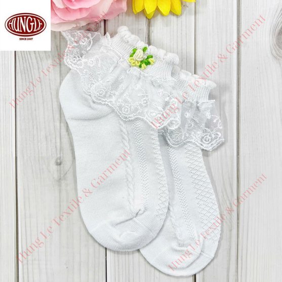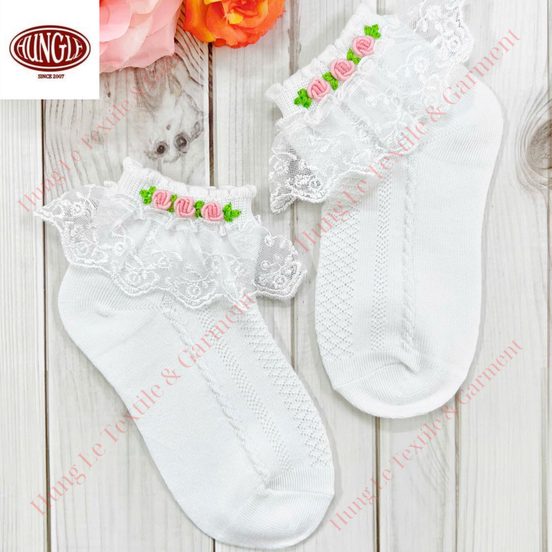 These thin, soft baby socks are made from 100% cotton and finished with knitted construction and delicate floral hand embroidery for a premium, vintage-inspired look; breathable, quick-dry, and eco-friendly with needle detection for quality assurance, manufactured in Ho Chi Minh City, Vietnam and available for international sourcing/export with OEM/ODM accepted, custom sizes, multiple flower color options, and customer logo support, with sample lead time 7–10 working days and delivery 7–15 days depending on order volume.