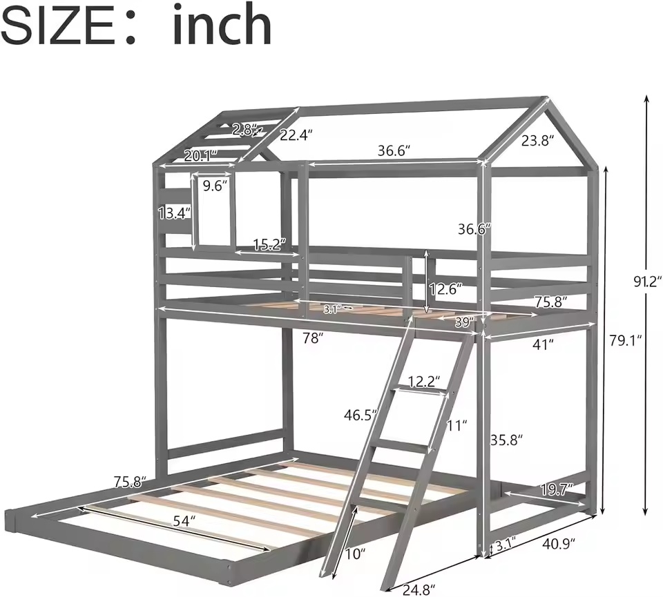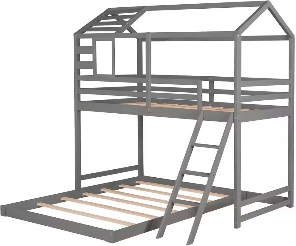 Made in Binh Duong, Vietnam, this L-shape “house frame” bunk bed is designed for kids’ rooms and hospitality projects, featuring a sturdy pine wood structure with iron components, an integrated ladder, and safety guardrails to support durable, space-efficient sleeping capacity for importers and B2B buyers sourcing indoor furniture programs.