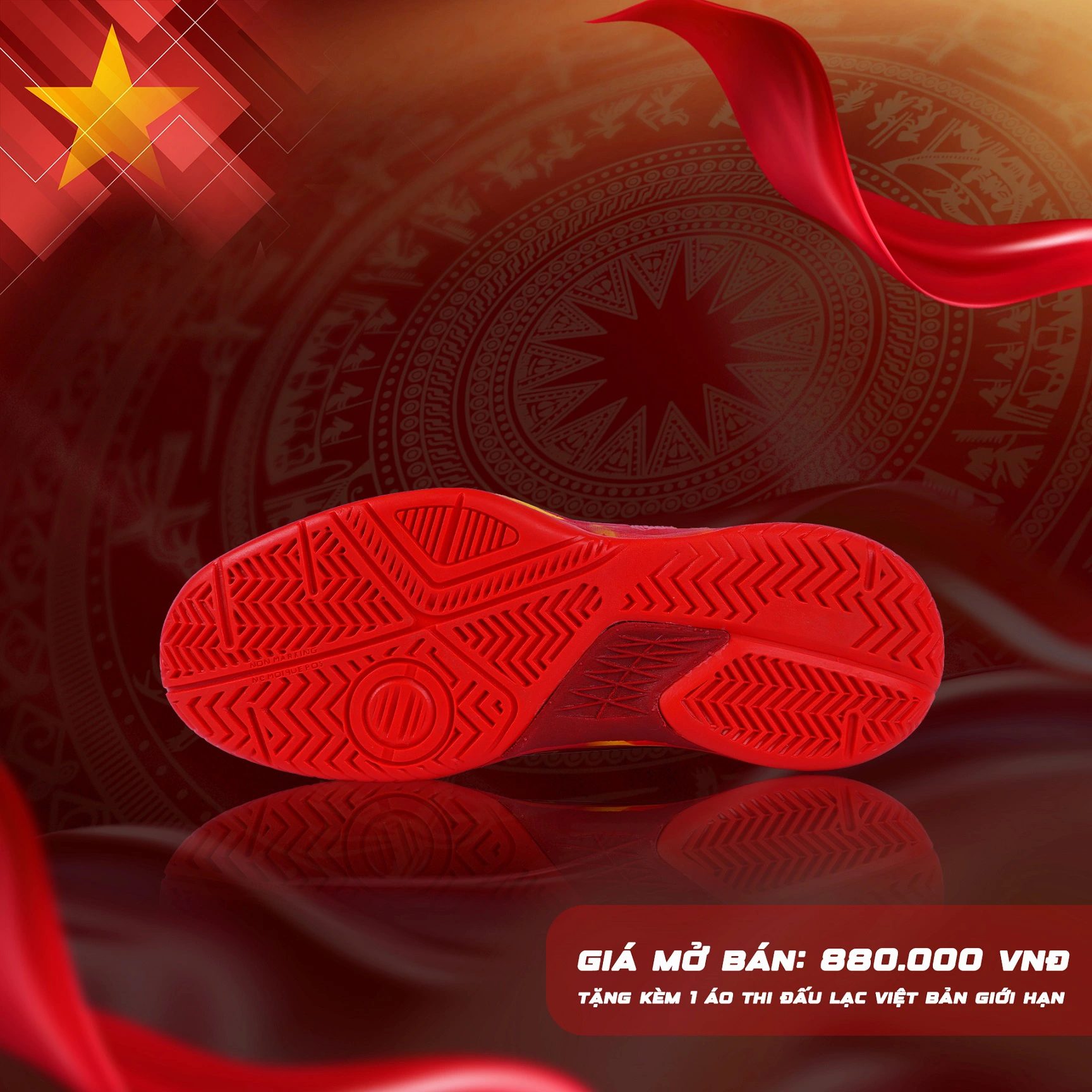 Made In Vietnam, Lac Viet 2025 is a limited-edition volleyball shoe designed for B2B sourcing that blends national-heritage storytelling with performance engineering, featuring a durable high-traction rubber outsole, a lightweight high-rebound Phylon cushioning system, a high-elastic TPU anti-torsion stabilizer for enhanced balance, a premium foam insole for shock absorption, and a synthetic-leather-and-mesh upper that supports breathability and shape retention; distinctive design elements inspired by Vietnamese heritage make it suitable for importers and distributors seeking Vietnam-made special-edition court footwear for export (Sizes: EU 40–43.5, subject to availability; limited-edition jersey can be included upon request)