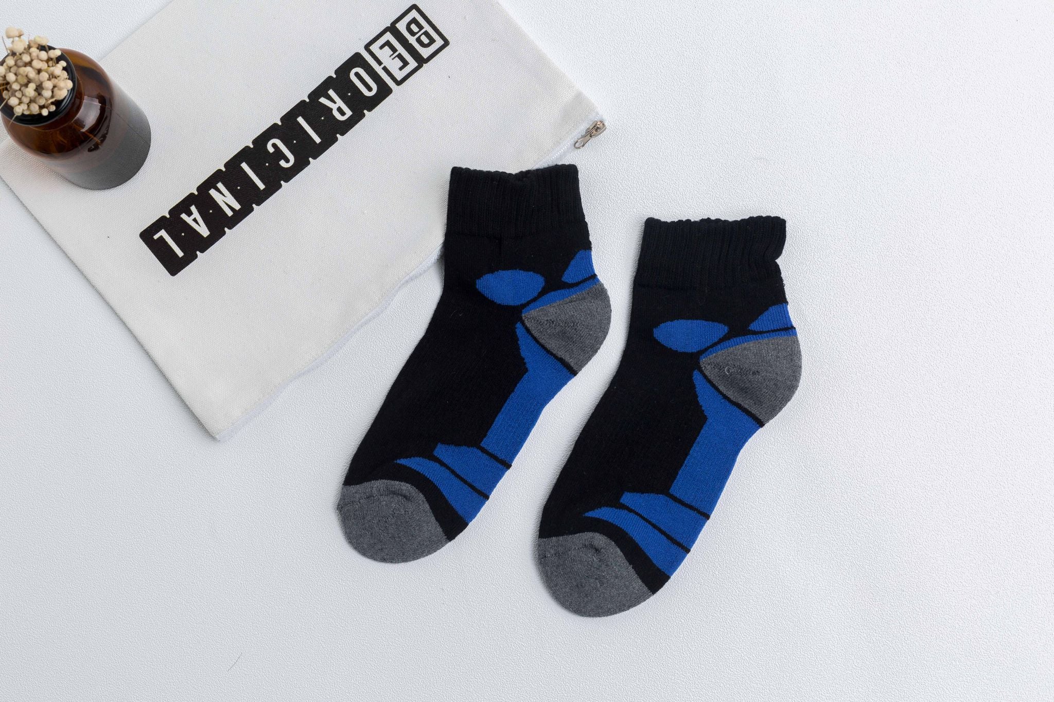 Designed for international sourcing and activewear supply, these men’s sports socks are made from a premium blend of 70% cotton, 20% spandex and 10% latex, delivering excellent moisture absorption for a dry, breathable feel; the cushioned terry construction at the foot enhances comfort and helps reduce friction during intensive movement, while ventilation zones promote airflow and the supportive arch band ensures a secure fit, all combined with a modern, sporty design, eco-conscious material selection without harmful chemicals, and reliable quality manufactured by Trinh Chung Private Enterprise.
