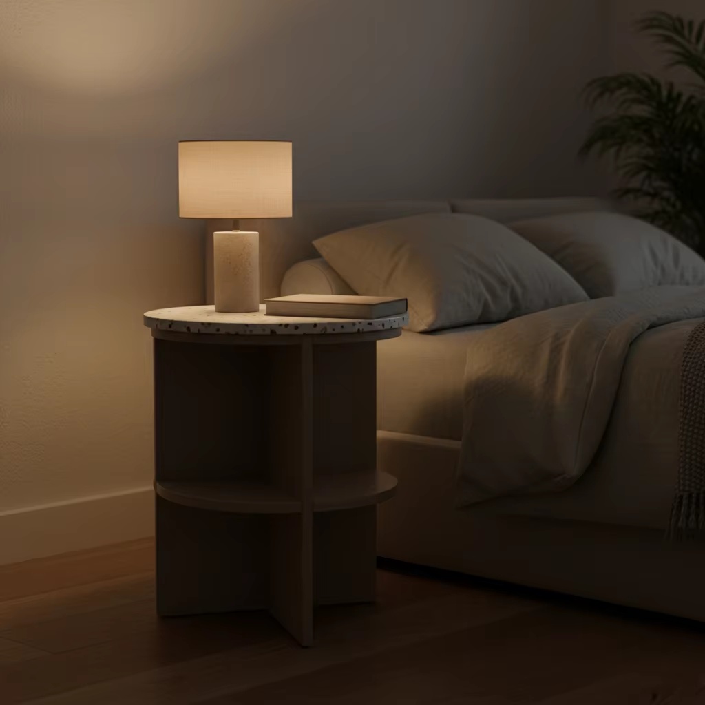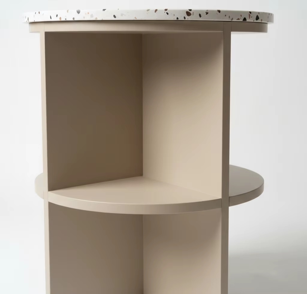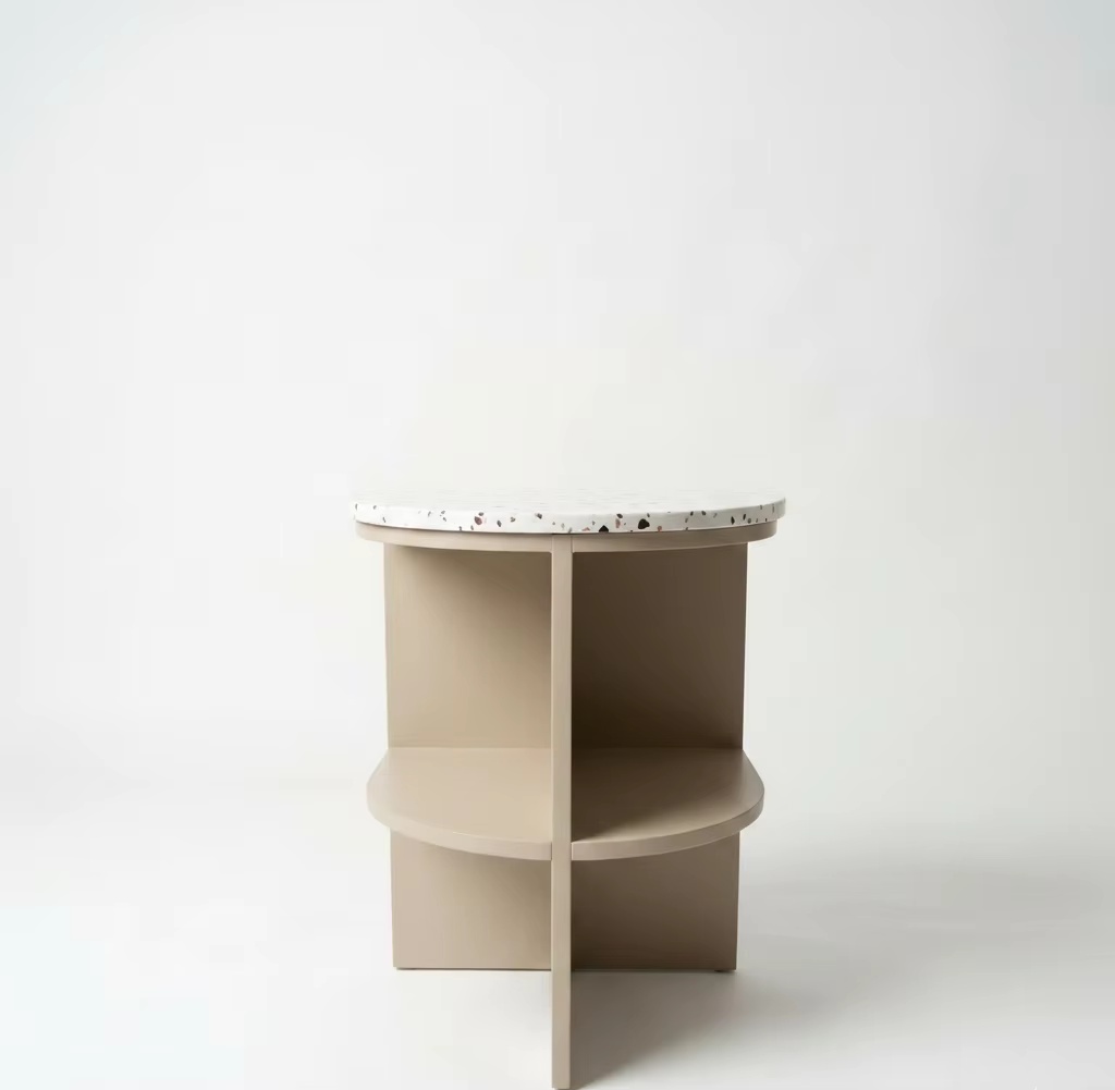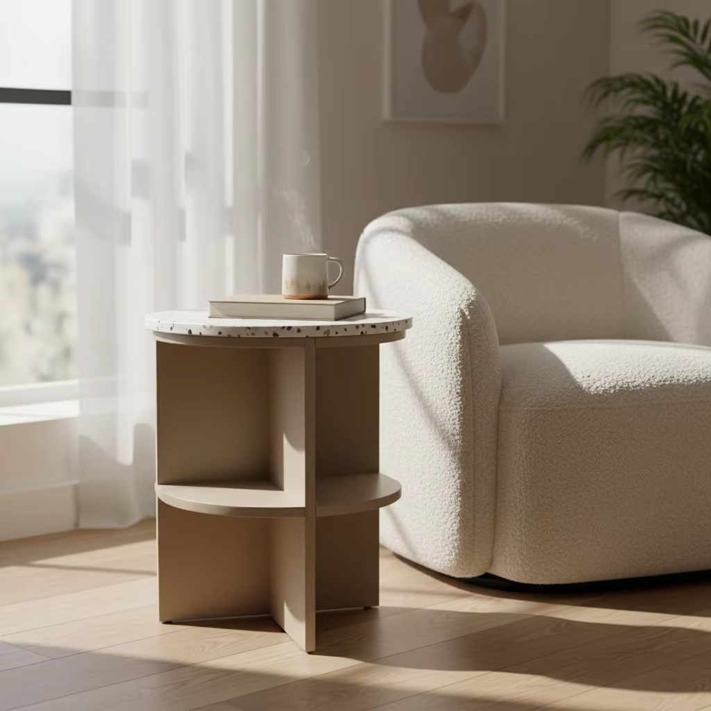 Modern 2-Drawer Side Table With Marble-Look Top (Eco-Friendly, Rubberwood & MDF With Oak Veneer, Greige)