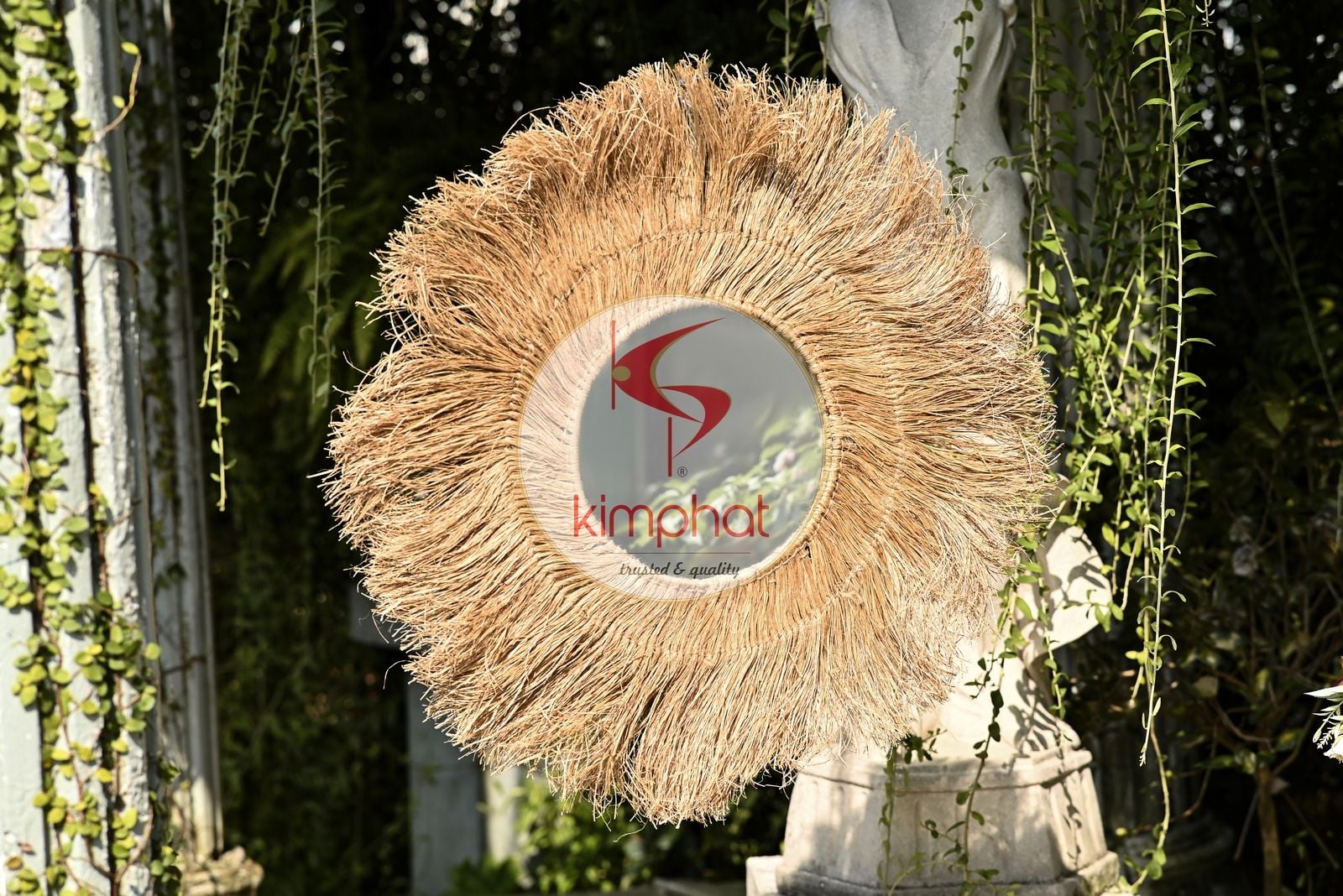 This is a nature-inspired wall mirror handcrafted in Vietnam using natural jute (eco-friendly), designed to bring a calm, organic look to indoor spaces for hospitality and home décor projects; standard size is Ø80cm x 2cm with a Ø30cm mirror insert, and custom sizes are available on request—ideal for international importers, wholesalers, and sourcing teams looking for sustainable handcrafted décor for export programs.