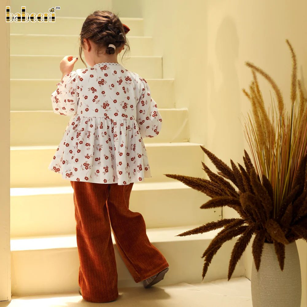 Smocked Floral Top & Wide-Wale Corduroy Pants Set