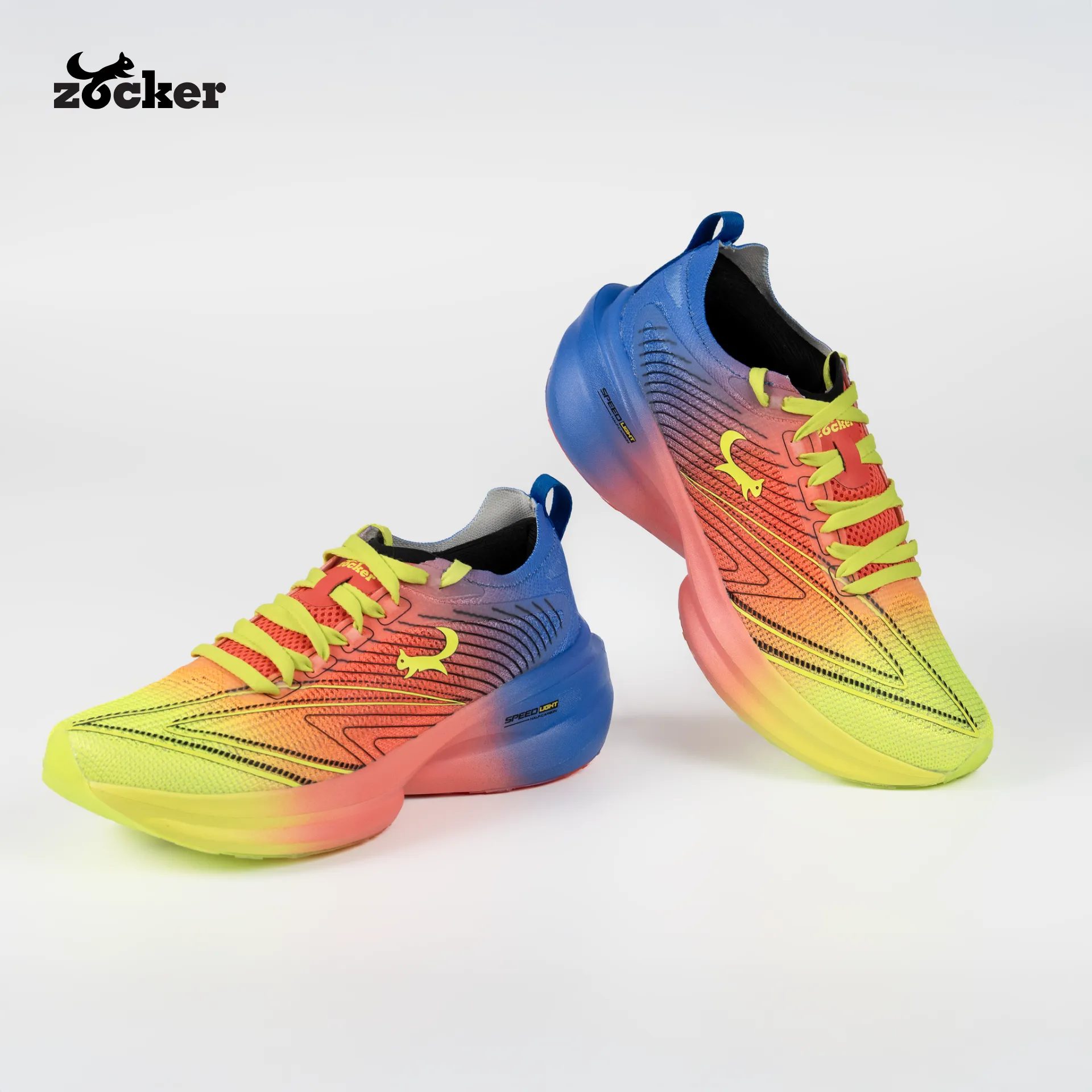 Engineered for speed-focused runners and professional training, this high-performance running shoe features a lightweight Flyknit upper for breathable, sock-like fit, a Light Rebound midsole for efficient energy return over long distances, and a full-length carbon plate to enhance propulsion, torsional stability, and running efficiency, paired with a durable GCU rubber outsole for reliable traction on dry and wet road surfaces; designed in a modern Blue/Orange colorway with sizes 36–45, this model is positioned as a premium Vietnam-based branded product suitable for international sourcing, retail programs, and performance footwear distribution.