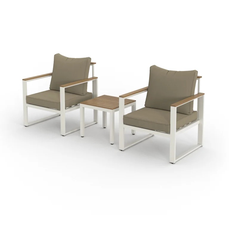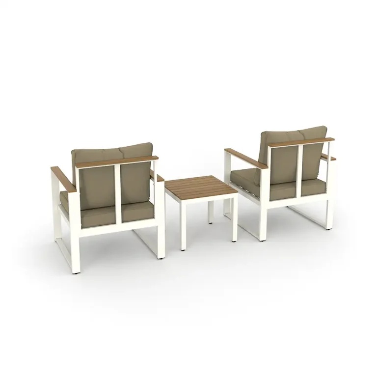 Manufactured in Vietnam, the Torvik Outdoor Conversation Set combines natural warmth with modern durability for importers and project buyers sourcing premium patio and garden lounge furniture. Built with 100% FSC-certified acacia wood and reinforced by a powder-coated aluminum frame, it offers strong structural stability for outdoor environments while keeping a refined contemporary look. Thick 100% polyester cushions (20 cm seat and back) deliver long-lasting comfort, and the natural oil finish helps protect the wood surface—ideal for terraces, resorts, and upscale outdoor living spaces.