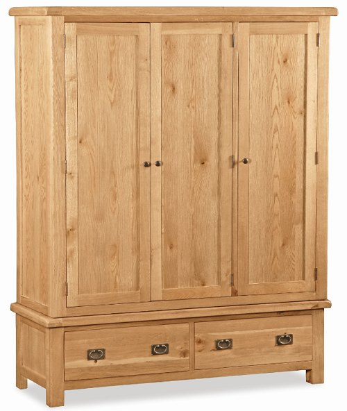 Tripple Wardrobe (Montreal–Quebec Program, Oak & Rubberwood, Export Packing, SKU MON-G637 / QUE-G1668)