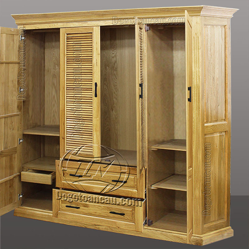 Manufactured in Ho Chi Minh City, Vietnam, this Tuscany wardrobe (TLN-134TU) is an export-line bedroom storage solution designed for importers, wholesalers, and project buyers seeking consistent solid-wood furniture sourcing. Crafted from American oak wood with oak veneer, it features a 4-door louvered/panel front and 2 spacious drawers, with a practical interior layout for hanging and folded storage—ideal for modern residential and hospitality fit-outs requiring durable construction and easy assembly.