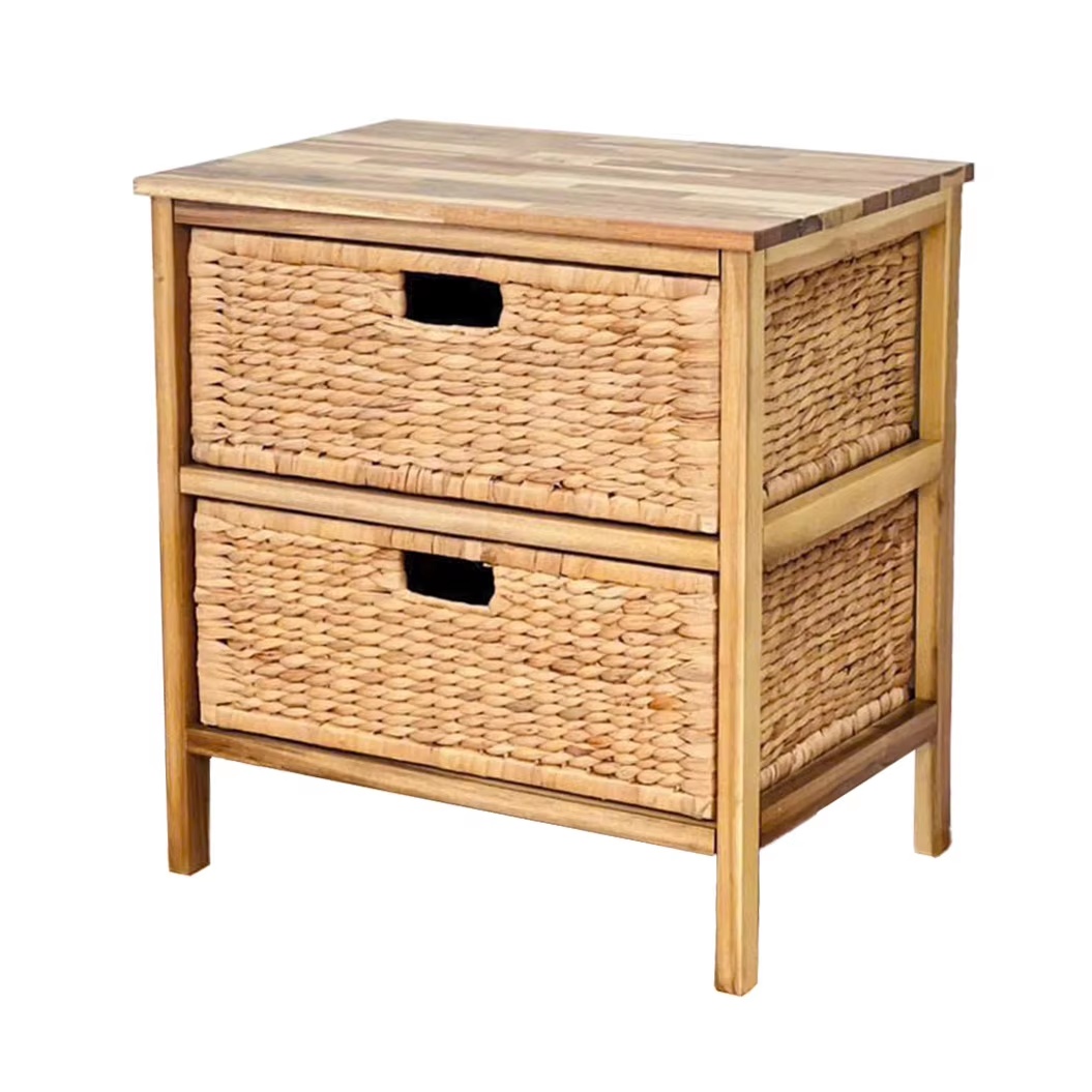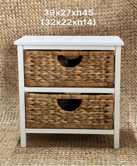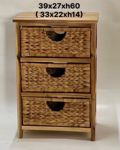Designed for wardrobes, closets, bedrooms, and living spaces, this floor-standing storage cabinet combines a wood frame with water hyacinth wicker drawers to organize clothing and household items in a clean minimalist look. Made in Ho Chi Minh City, Vietnam, it is suitable for wholesale sourcing for distributors, retail chains, architects, and hospitality/real-estate projects, with OEM/ODM services available for custom logo, packaging, and graphic requirements.