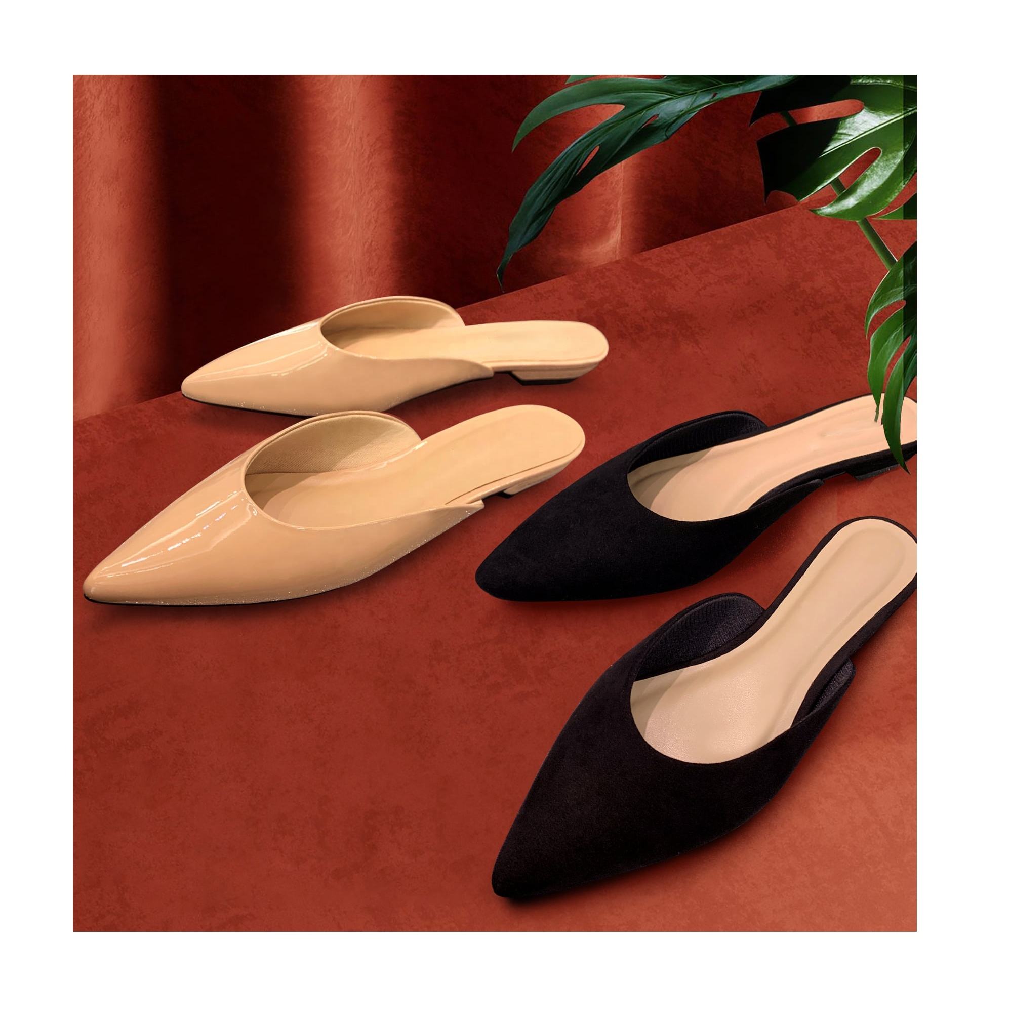 Trendy daily flats with a pointy toe and stable 3–5cm square heel, made with PU upper/lining/midsole/outsole for breathable, lightweight comfort and secure anti-slip wear; manufactured in Ho Chi Minh City, Vietnam for wholesale/export sourcing with OEM customization available (custom logo MOQ 100 pcs; customized packaging MOQ 200 pcs) and supply capacity up to 1,000 pairs/week.