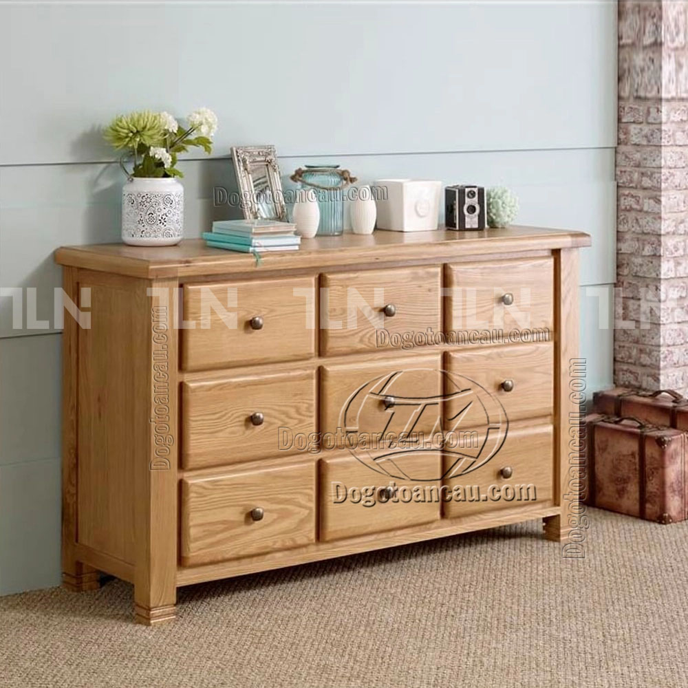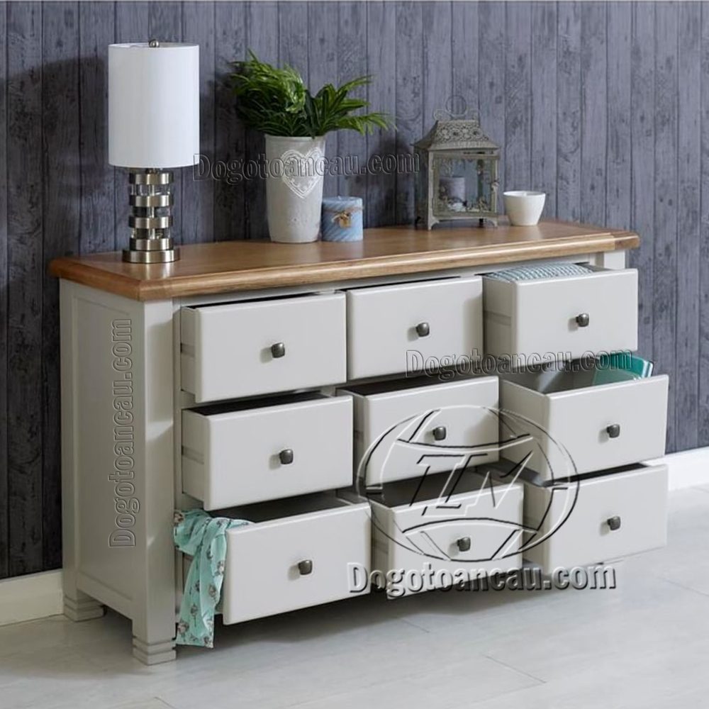 Woodstock 9-Drawer Chest (American Oak Wood, White/Natural Finish, 150cm)